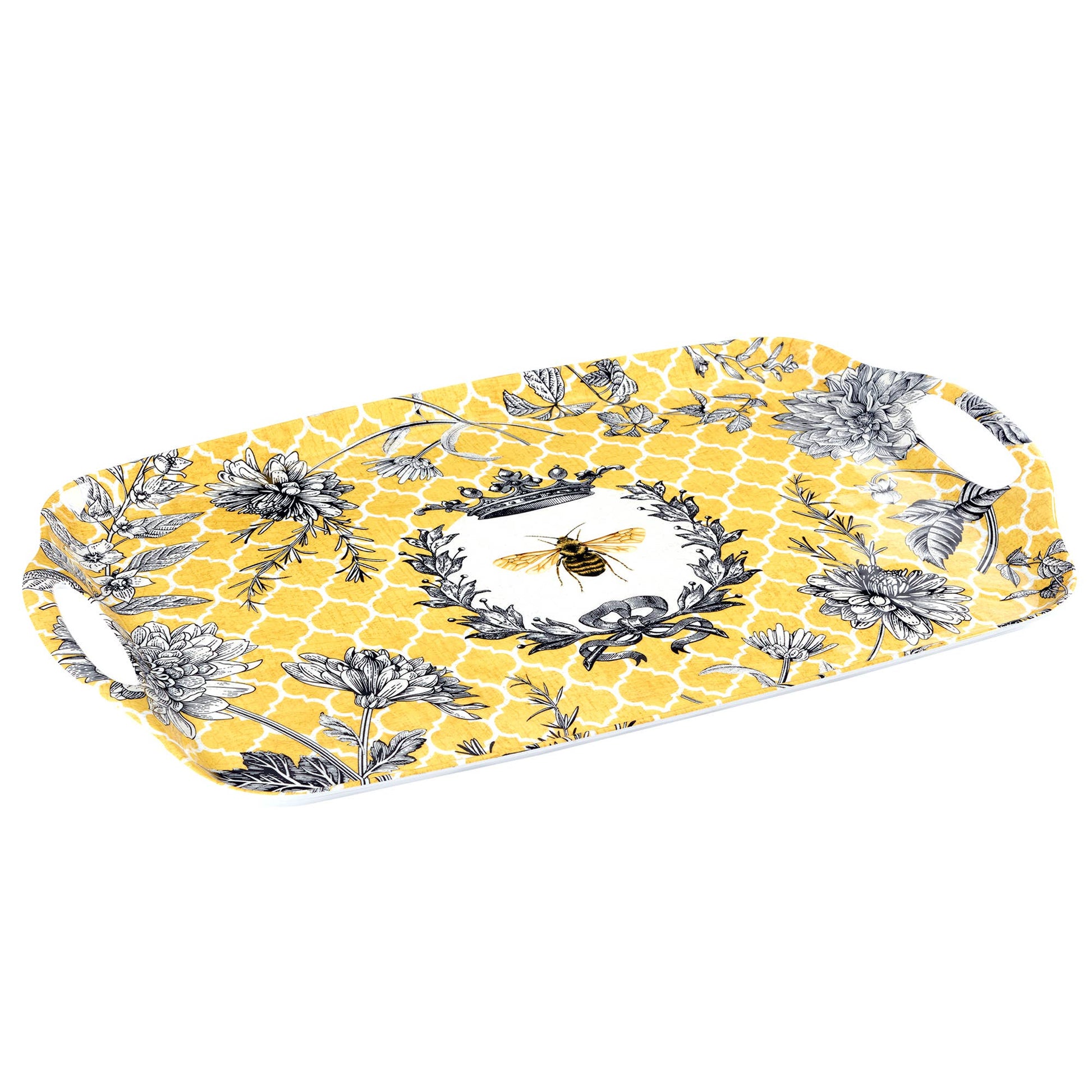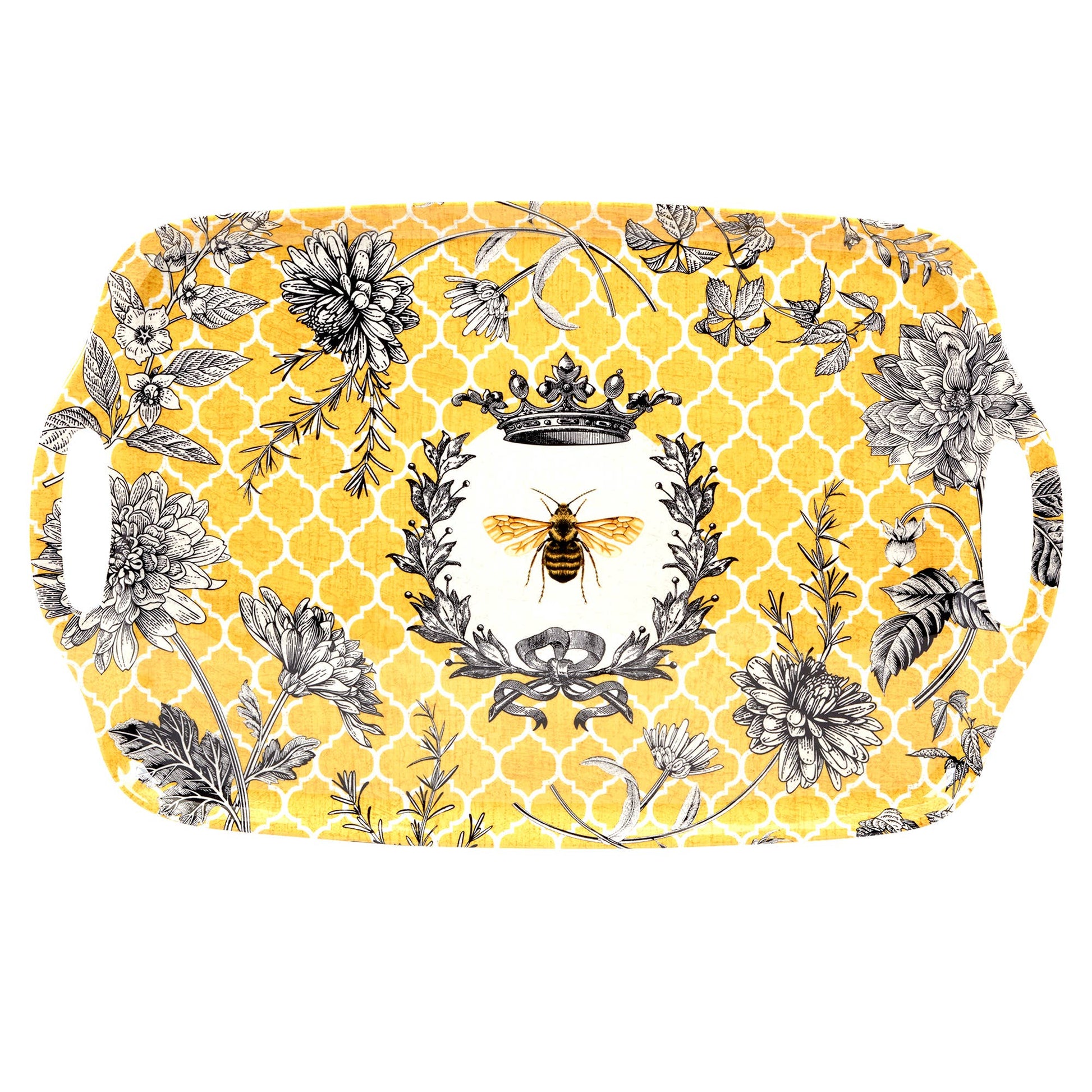 French Bees HW Melamine Rect. Tray w Handles 19in x 12in