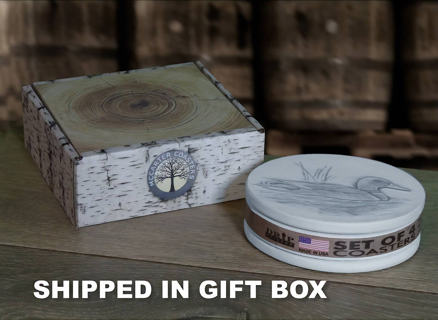 McCarter Coasters naturally absorb moisture while the cork feet protect your furniture. All the moisture disappears and the coaster will never stick to your glass. The fine textured detail is embossed giving them dimension, and the natural color goes with any decor.