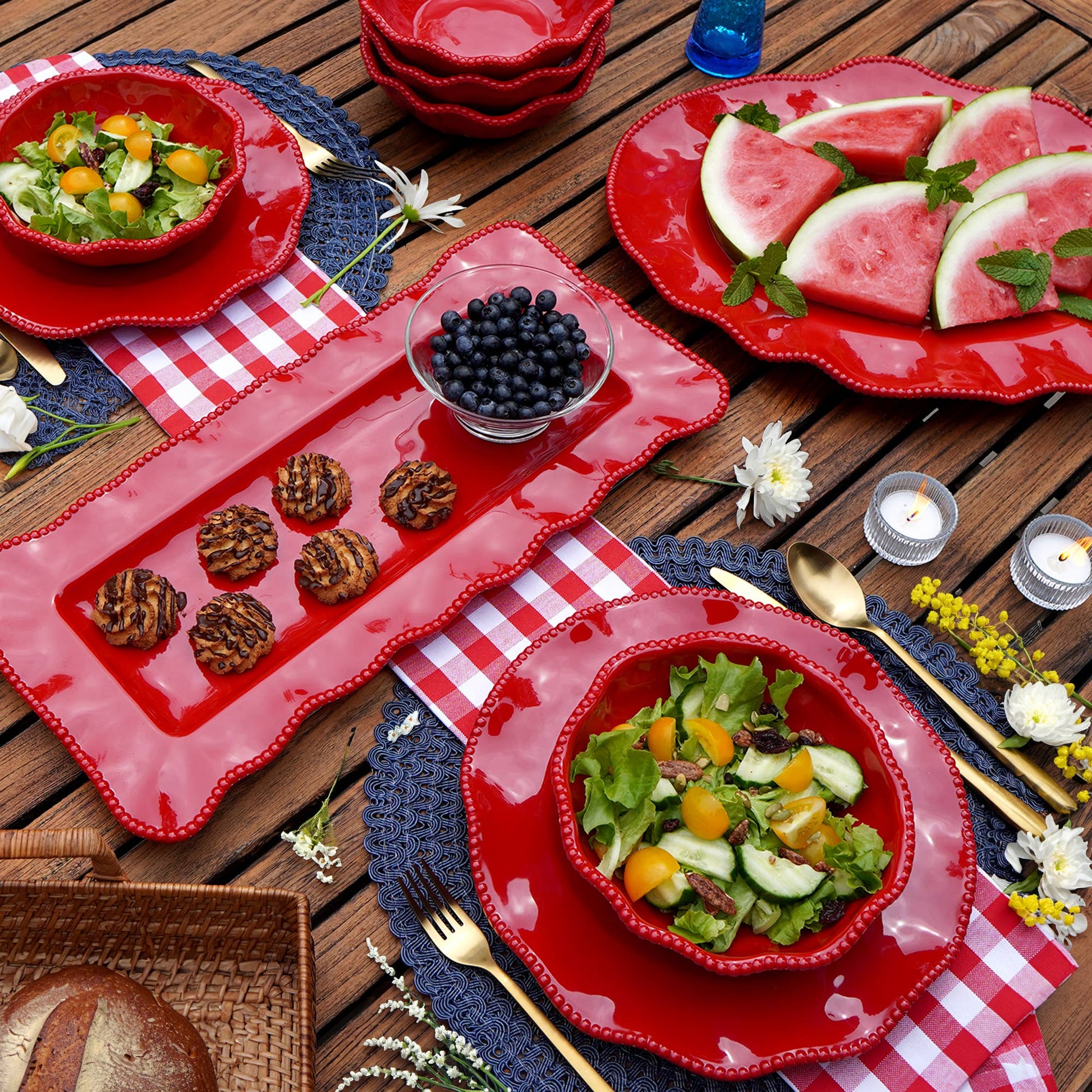Unveil a centerpiece that combines functional design with a splash of color — the Perlette Red Melamine Oval Platter. At a grand size of 18 inches by 13.5 inches, this platter is the perfect canvas for your culinary creations, from a succulent roast to an array of vibrant hors d'oeuvres. The rich, glossy red finish and delicate beaded edge provide an elegant contrast to any food arrangement, elevating your presentation to a work of art. Melamine's durability means this platter is ready to become a long-standing player in your hosting repertoire, able to withstand the rigors of both indoor and outdoor dining. And once the guests have departed, its dishwasher-safe feature promises a swift and easy return to order, ready for your next soiree. The mix-and-match versatility of this piece also means it can harmonize with an array of dinnerware, making it as adaptable as it is striking.