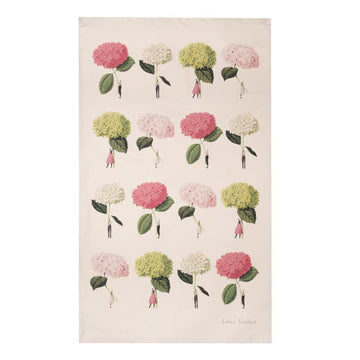 Pink and Green Hydrangeas In Bloom Tea Towel