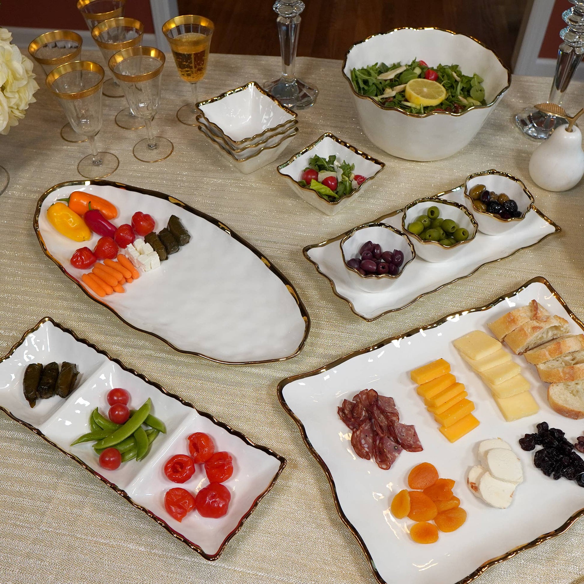 Experience the ultimate in dining luxury with the Regency Gold Set of All 4 Bowls. This exquisite set includes four beautifully designed bowls, each adorned with a stunning gold trim. Perfect for serving soups, salads, desserts, and more, these bowls add a touch of elegance to any meal.