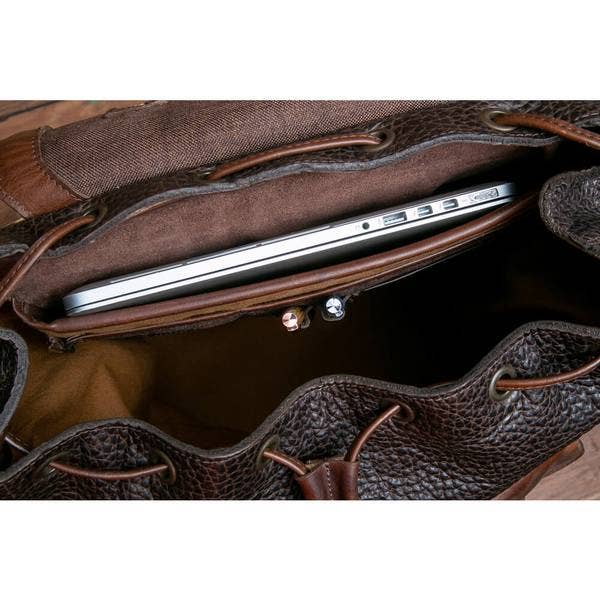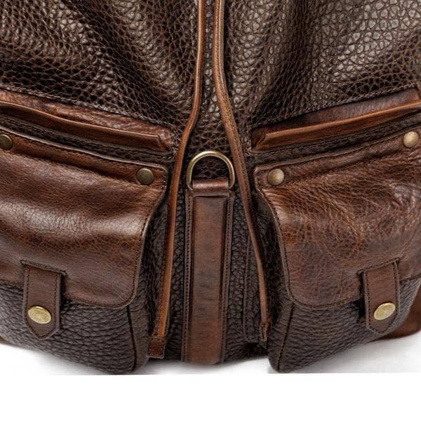 Highly functional, the Theodore Leather Backpack is handcrafted with our signature thick, supple full-grain US steerhide pebbled Espresso chrome-tanned leather. It's exquisitely appointed with chocolate full-grain leather accents & smartly placed solid copper rivets.